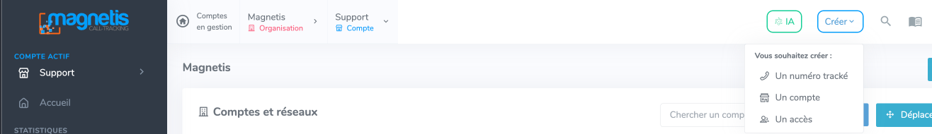 Tout d'abord, sachez qu'il existe 5 types d'accès : Administrateur : gestionnaire principal du compte, Manager : accès à la gestion du compte et aux fonctionnalités Magnetis, Viewer : accès aux données du Call-tracking, Développeur : accès aux ...