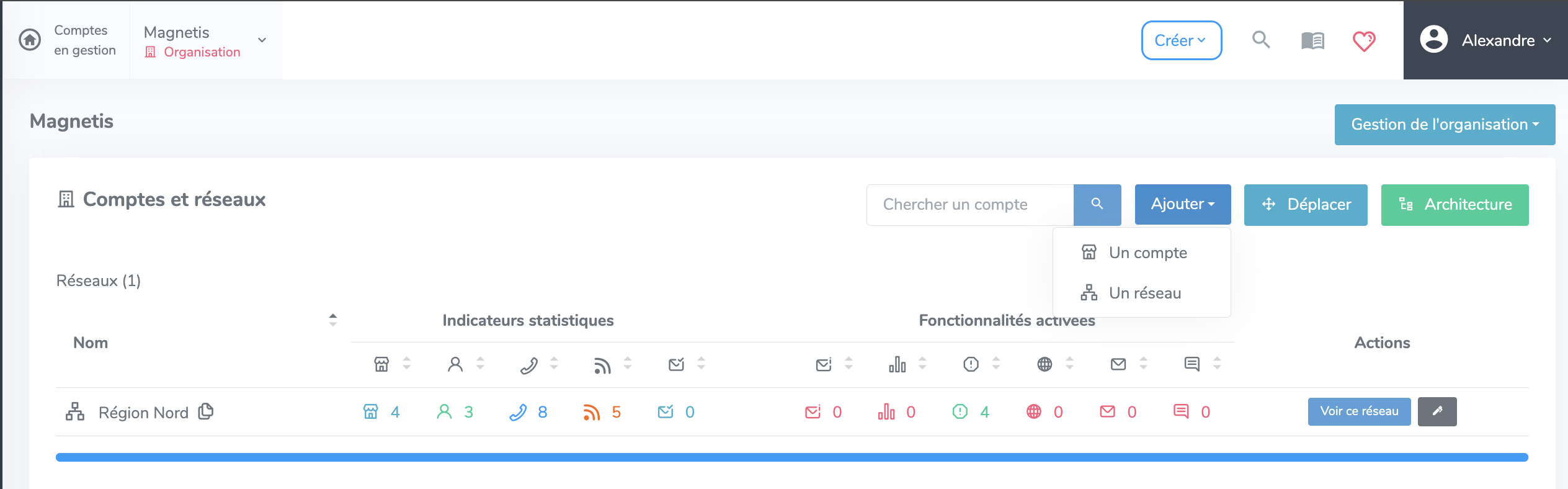 Vous pouvez regrouper vos comptes par réseaux, zones géographiques ou clients, afin d’avoir une organisation claire et hiérarchisée.