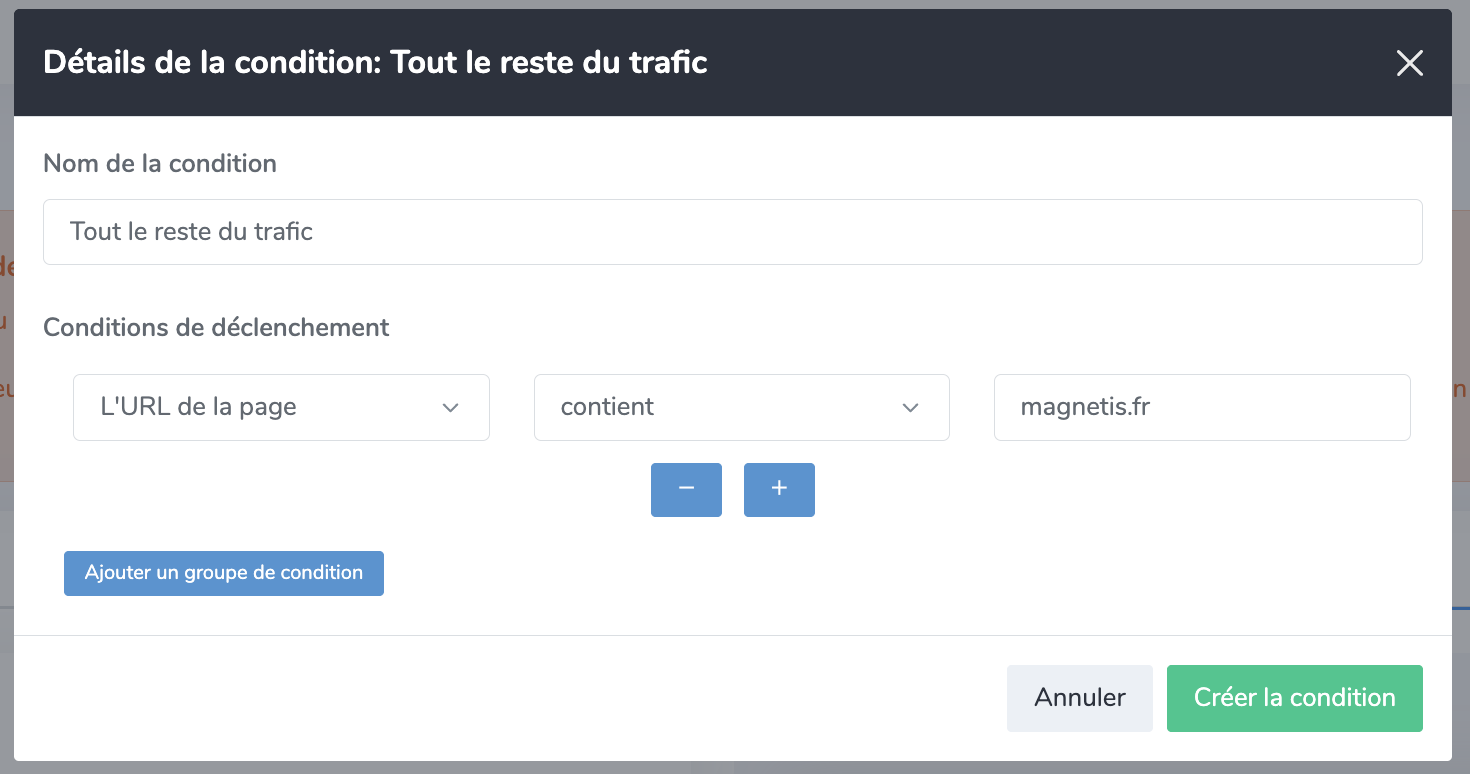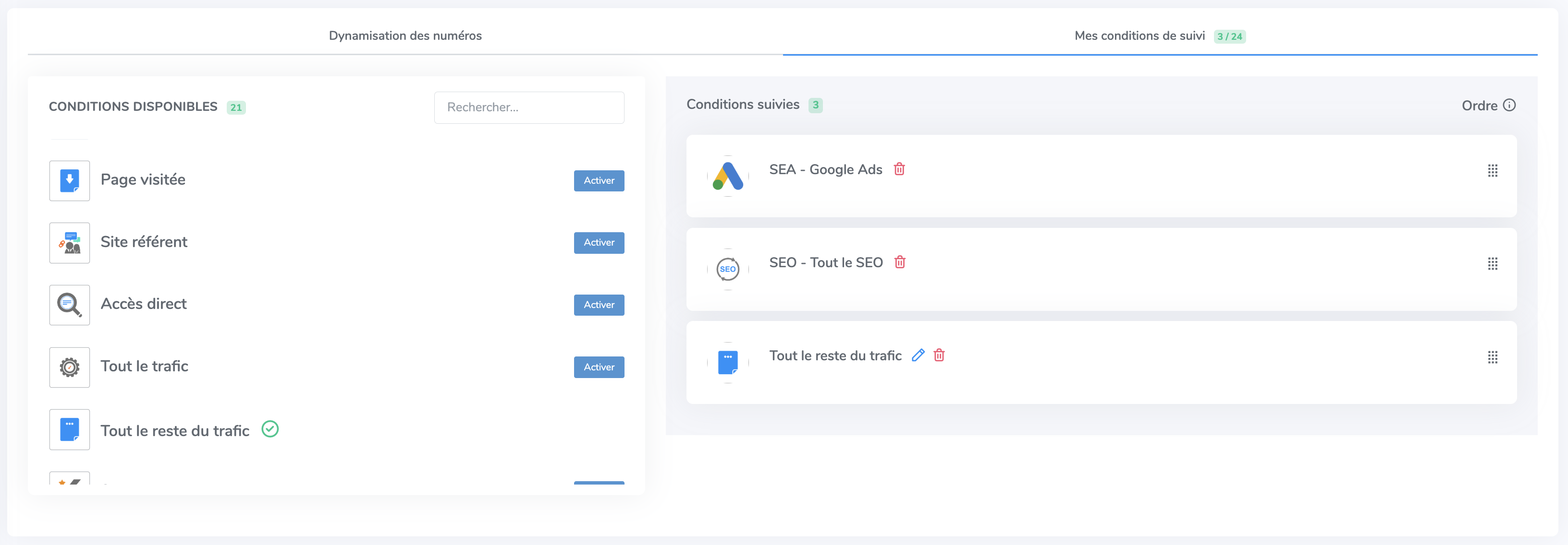 Choisir les conditions de suivi (canaux : SEA, SEO, Social, Emailing, etc.).