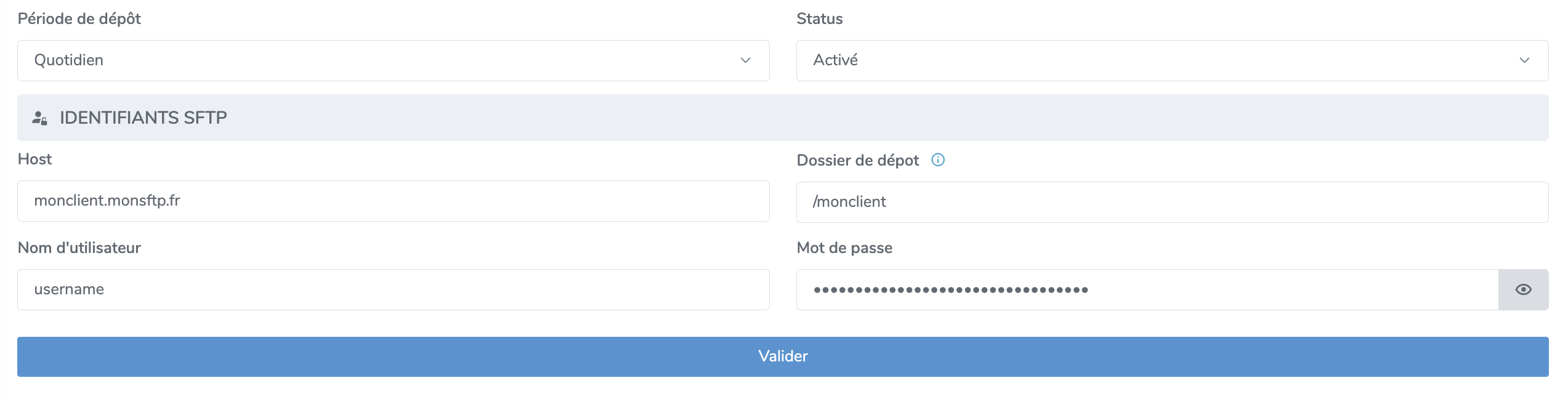 Support : Contactez-nous si vous avez besoin qu'on vous mette à disposition un serveur SFTP.