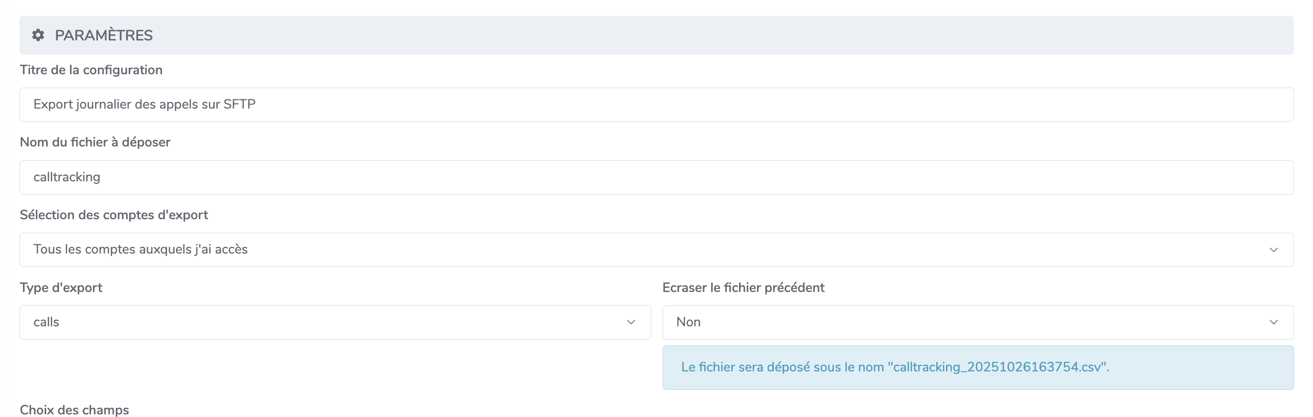 Pour activer votre flux de données Call-Tracking vers SFTP :