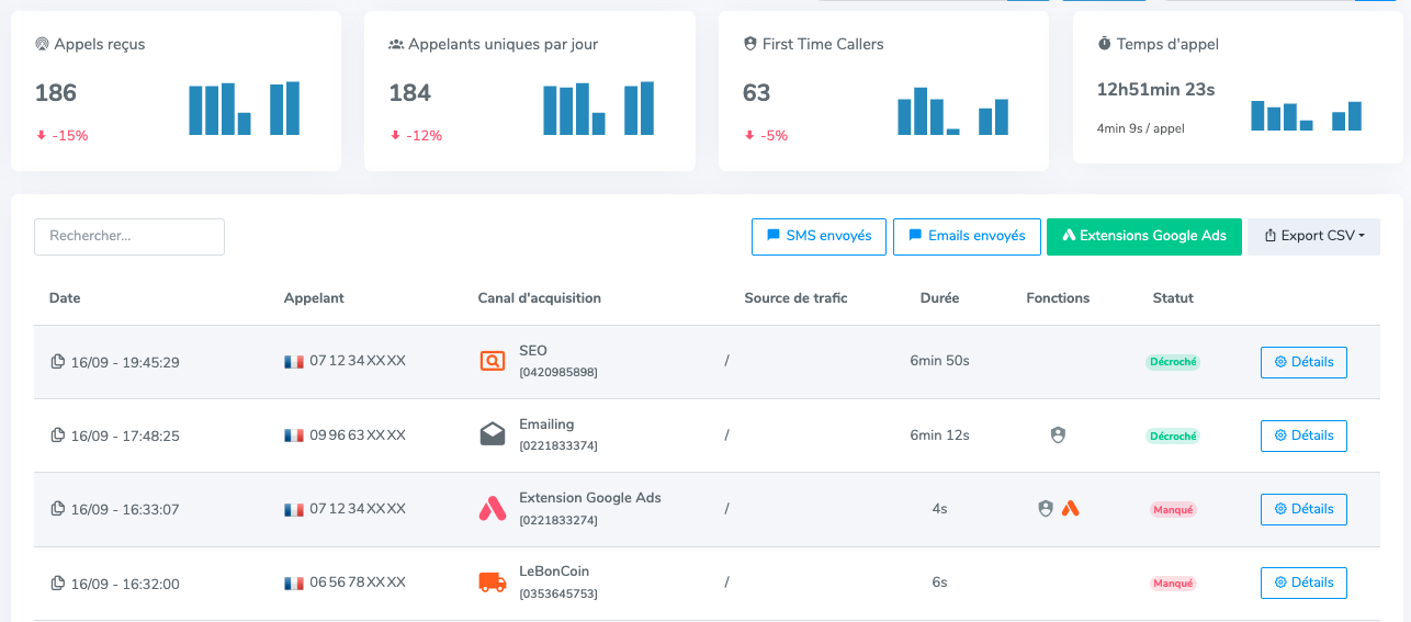 Oui, grâce aux alertes SMS à l’appelant, vous pouvez rassurer immédiatement vos prospects.