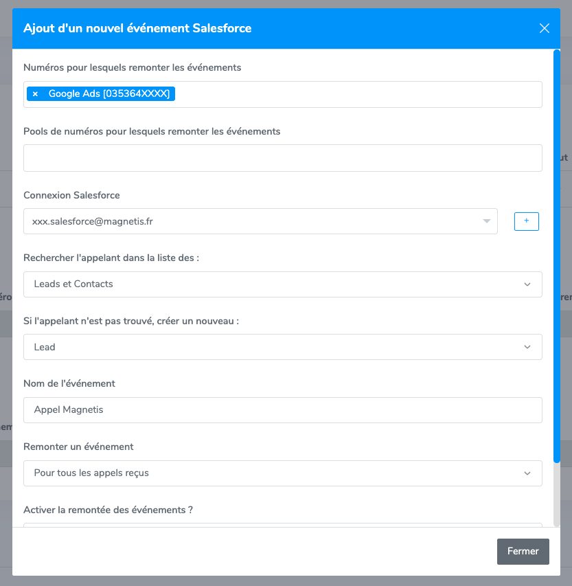Pour que les données remontent, vous devez configurer un évènement, c'est-à-dire, quand et comment Magnétis doit envoyer des informations à Salesforce.