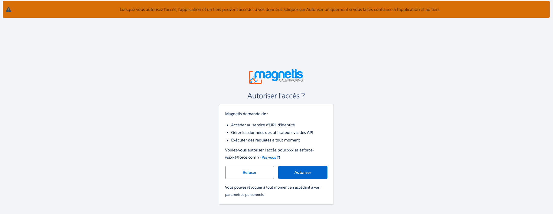 Dans l'espace de configuration Salesforce de l'interface Magnétis :