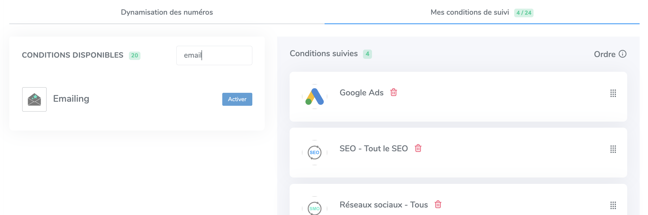 Dans la section Mes conditions de suivi, ajoutez Emailing.