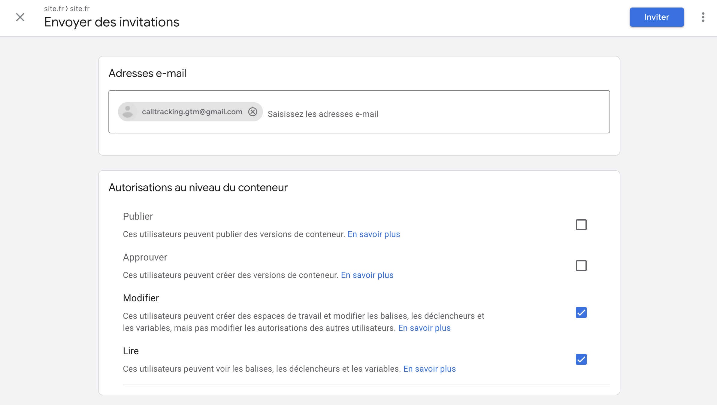 Vous pouvez modifier ou révoquer ces autorisations à tout moment depuis votre compte GTM.