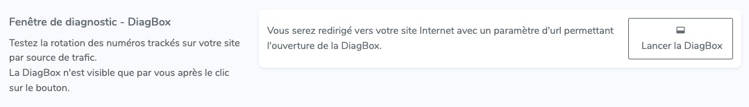 Dans l'interface Magnétis, onglet Module web >Paramètres & installation, cliquez sur "Lancer la DiagBox"
