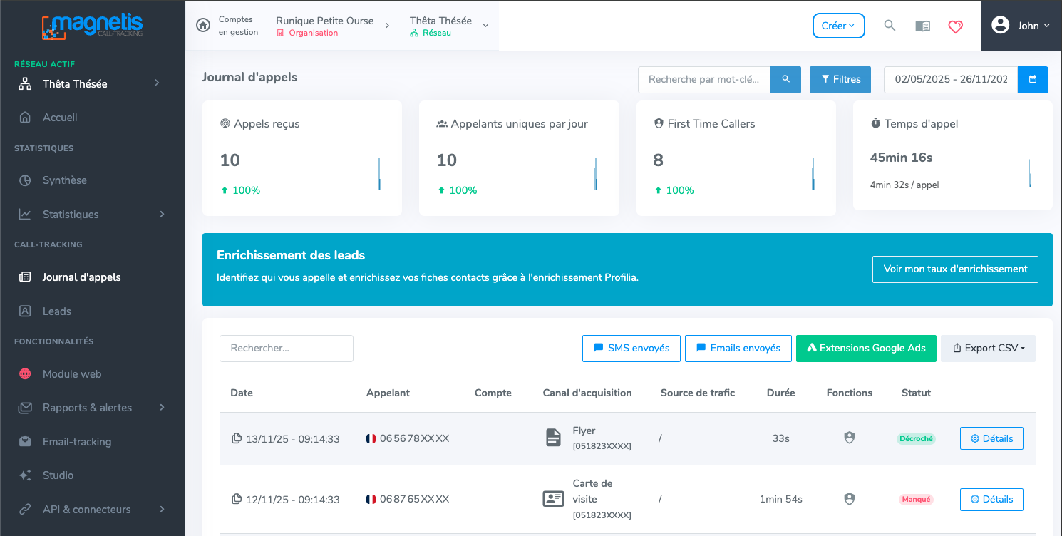 Surveillez votre ROI : Consultez les détails enrichis (icône spécifique) pour mieux convertir vos prospects.