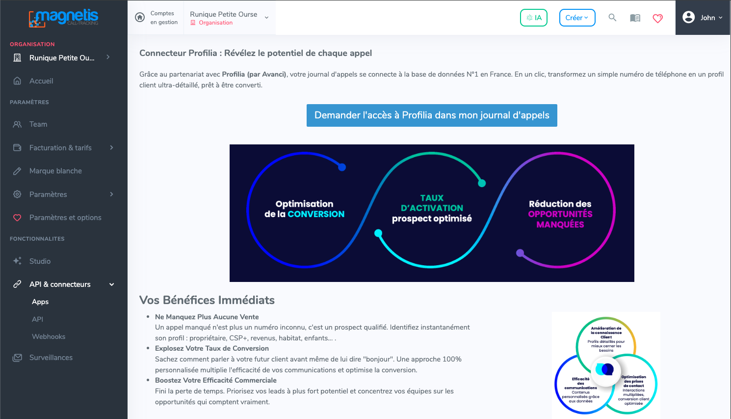 Pour profiter de l'enrichissement de données Profilia dans Magnétis :